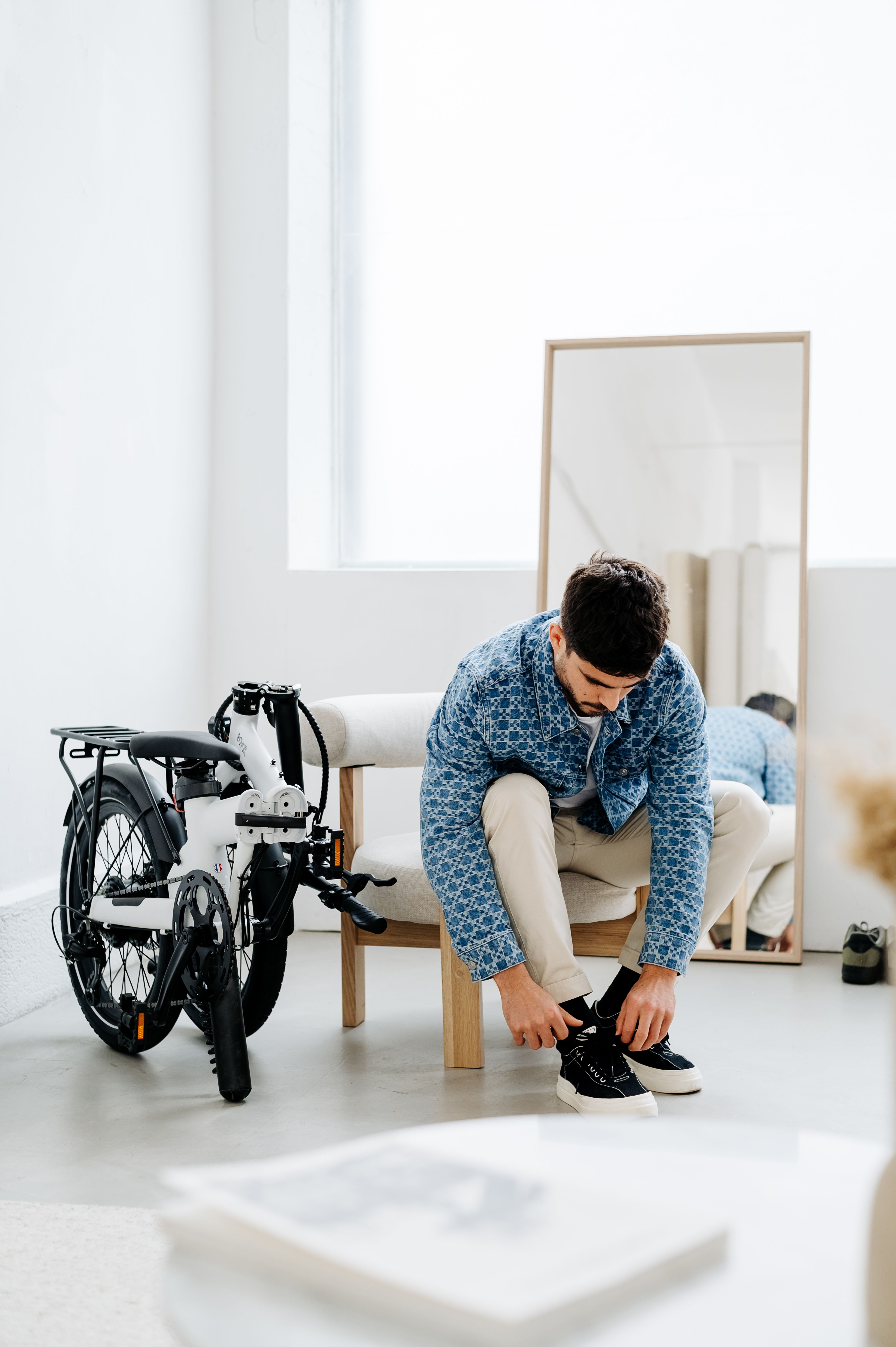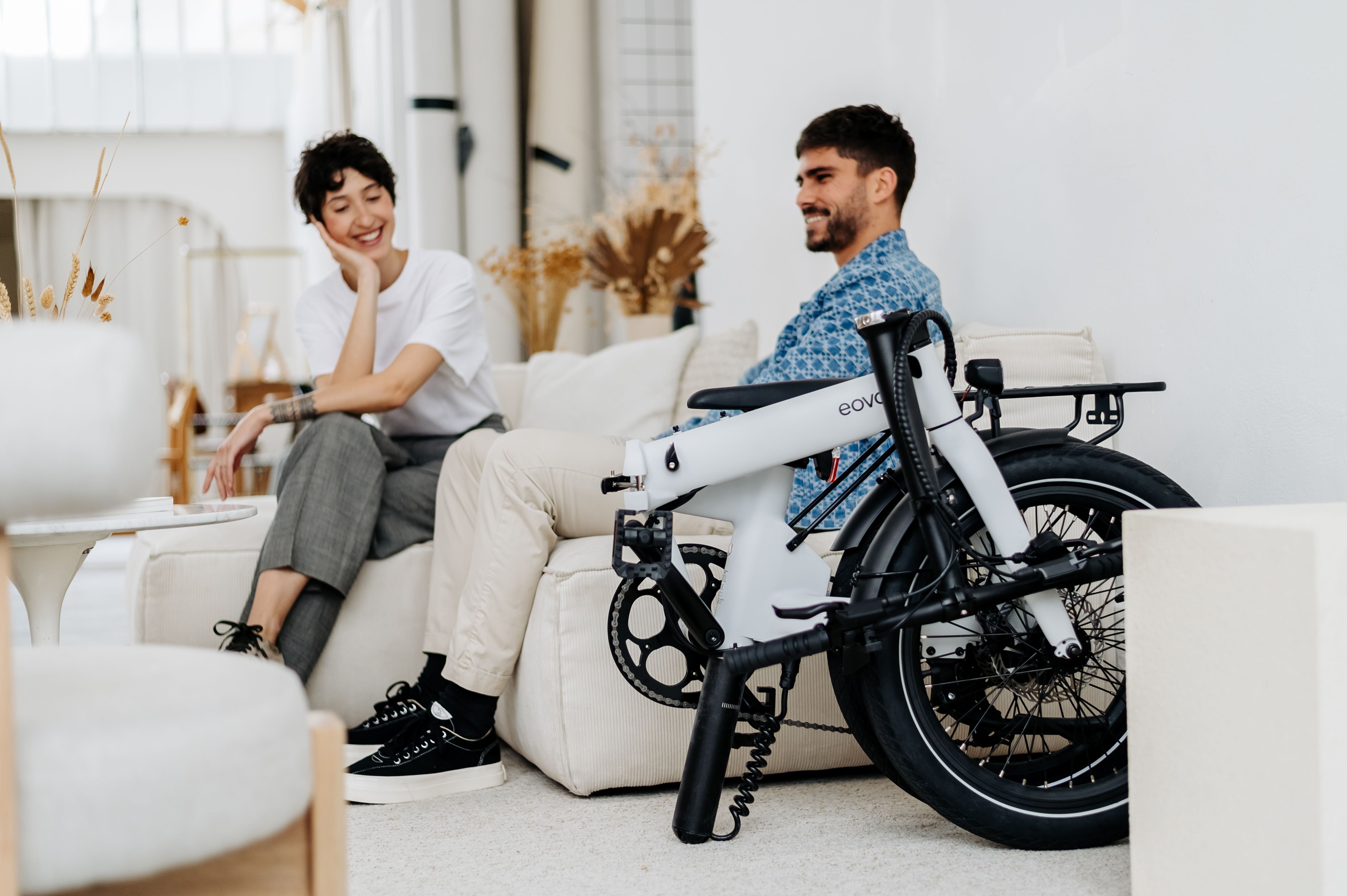 Bicicletta elettrica pieghevole con ruote da 20 pollici e batteria nel reggisella.
